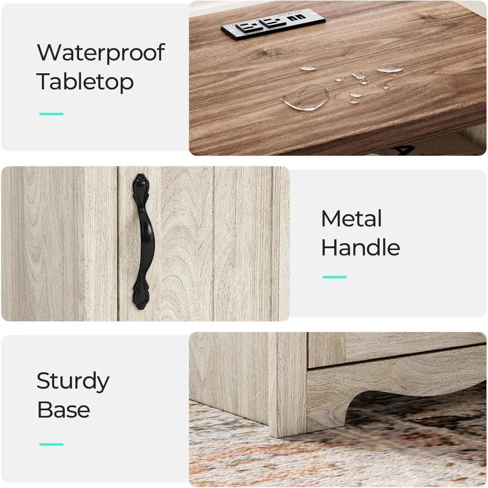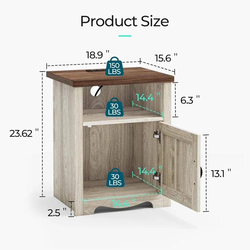 This pair of farmhouse-style wooden nightstands combines rustic charm with modern convenience, featuring built-in charging ports and a sturdy design — perfect for bedrooms or living rooms.