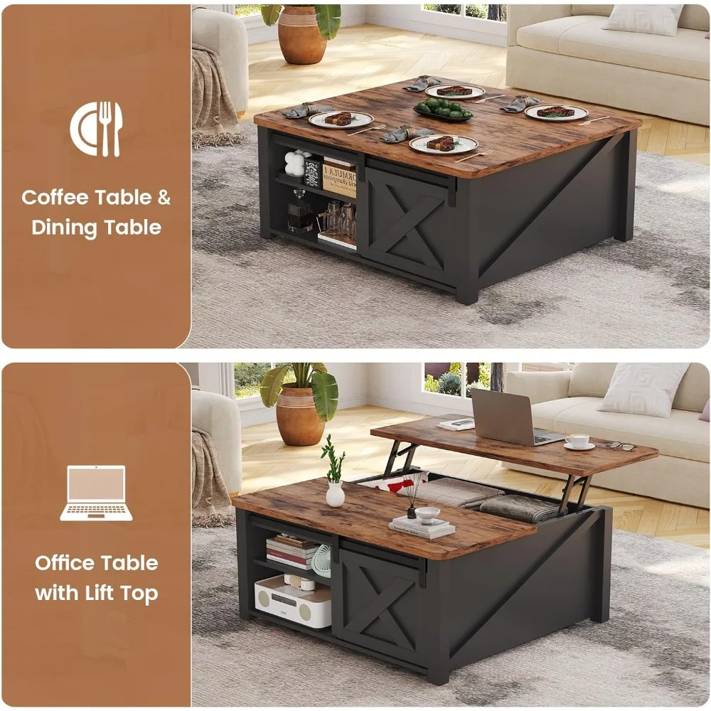 Upgrade your living space with this Lift Top Coffee Table featuring a large hidden storage compartment and modern farmhouse design. The lift-top surface provides a convenient workspace or dining area, while the spacious interiorkeeps clutter out of sight. Perfect for living rooms or apartments, this sturdy and stylish table combines functionality, storage, and rustic charm in one elegant piece.